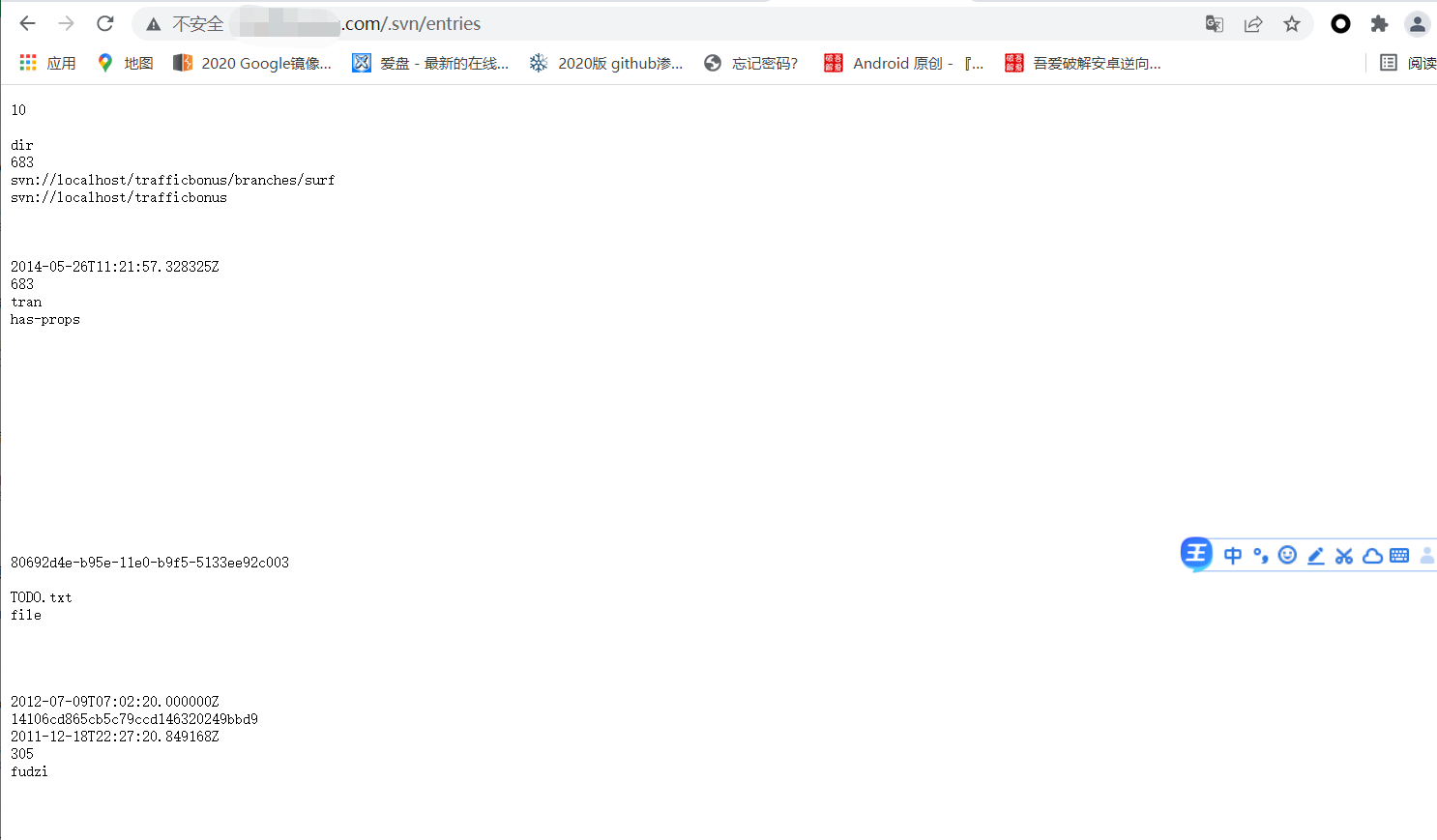 - svn<1.7,文件会先去读取entries文件的中的目录结构,因为默认文件名都是直接明文存的。