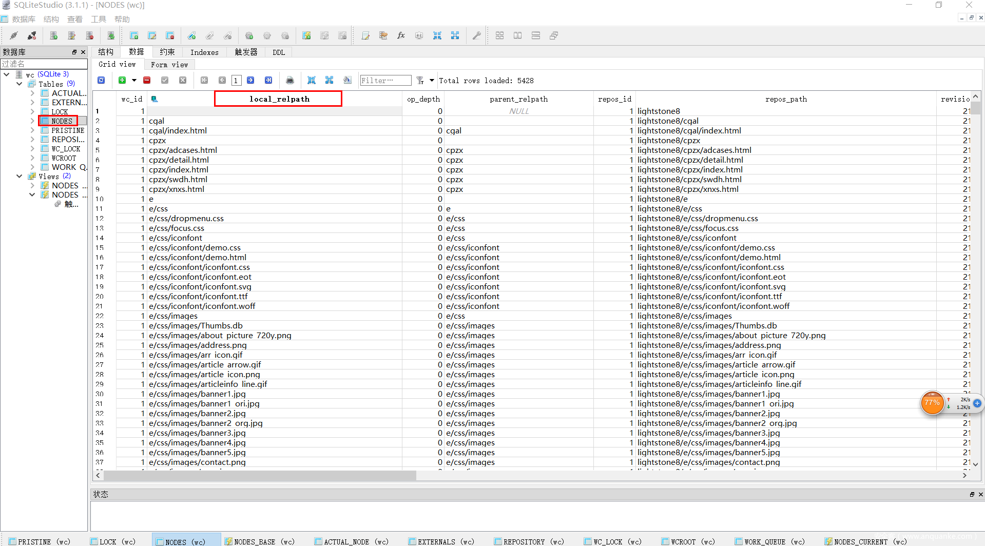 在NODES表中,通过遍历local_relpath列下的每一行,我们就可以下载这个系统的所有代码数据了