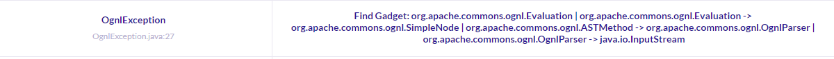下面是查询OGNL利用链,这里需要调用4次 findClass 谓词,最终查询到了OGNL利用链的可利用类。