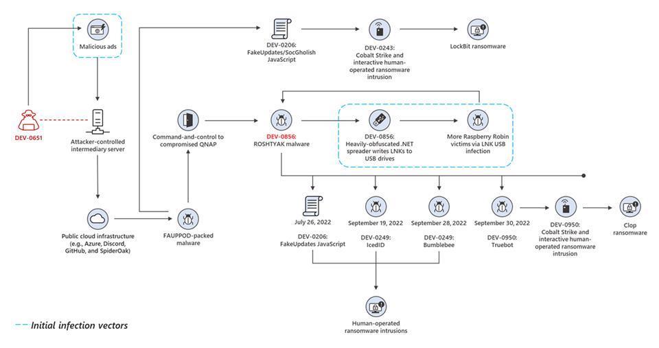 微软表示,一个被追踪为DEV-0950的威胁组织使用 Clop 勒索软件来加密先前感染了Raspberry Robin 蠕虫的受害者网络。