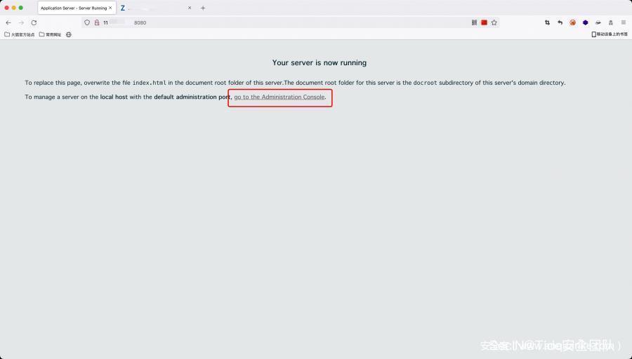 fofa:title=”* * * * Suite AS” 涉及敏感手动打码(狗头) 鹰图:web.title=”* * * *Suite AS” 涉及敏感手动打码(狗头) 或搜索下列页面跳转到中间件登录页面,如下图。 fofa:title=”Application Server – Server Running” 鹰图:web.title=”Application Server – Server Running”