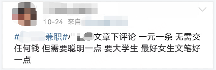 另一方面,黑产也引诱学生加入该产业链底端。比如以“兼职”名义让学生担任水军等。