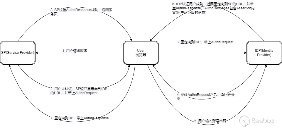 可能大家在网络上看到的一些流程图会多一两个步骤或少一两个步骤,那只是开发人员在具体选择和实现SAML传输时存在的一些差异,对于我们了解整个SAML认证流程问题不大,知一反三就行。基本的认证流程如下: