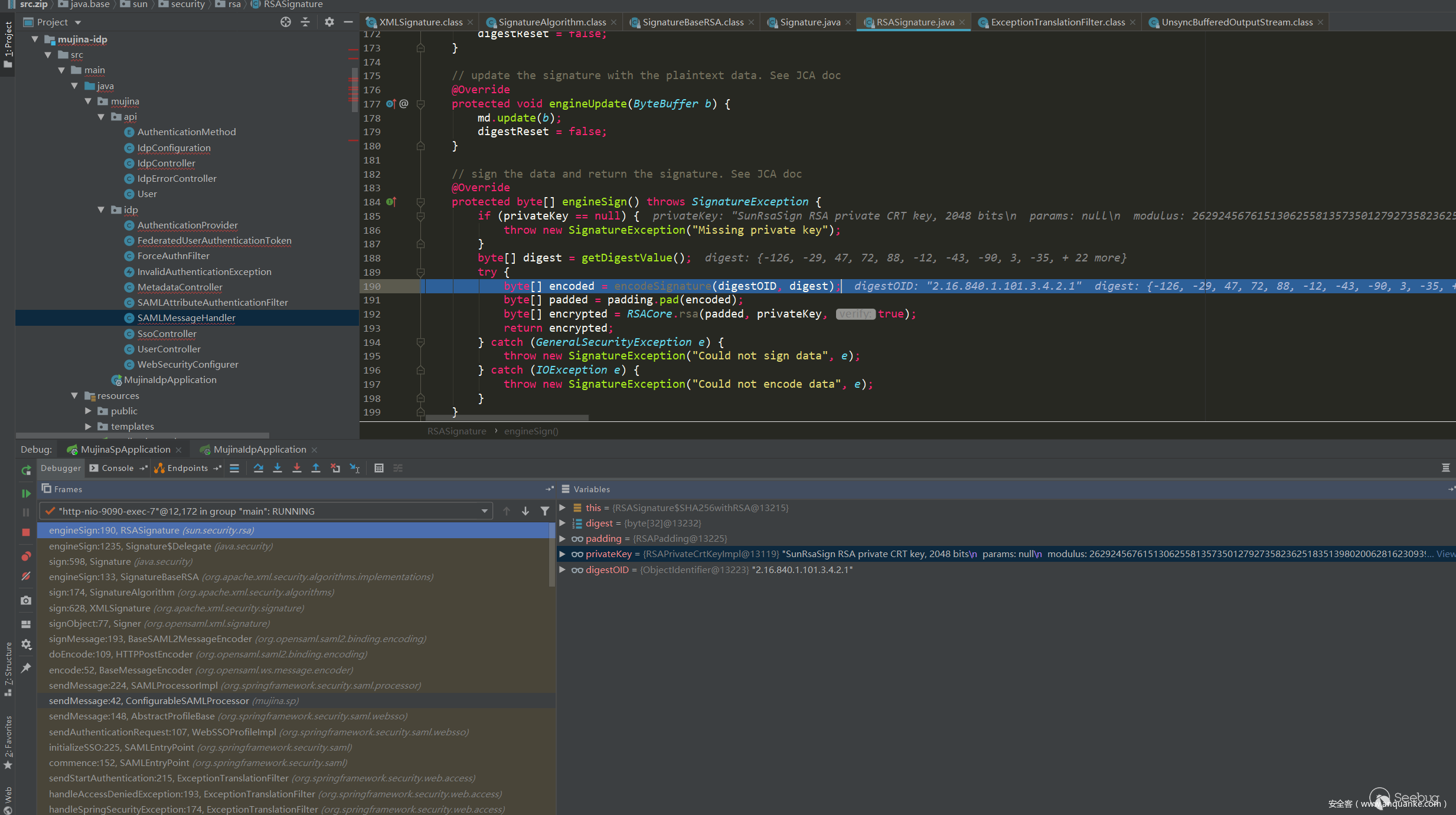 使用SP的私钥(在application.yml文件中有配置),对SingedInfo进行签名:
