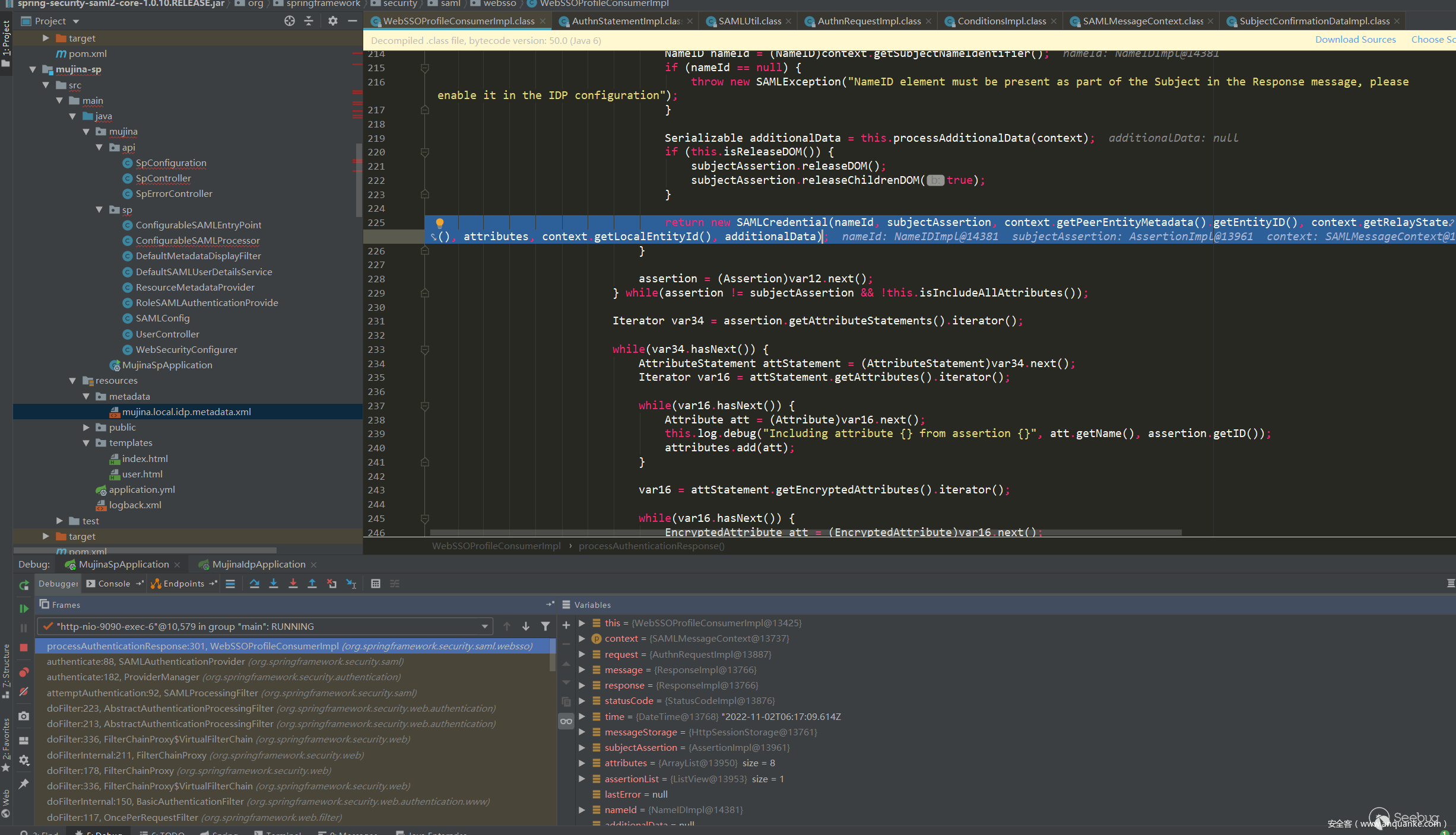 校验方式和Response中的校验一致,证书用的本地配置的而不是从Assertion中提取,校验了Assertion中的Sianature、摘要信息,还校验了Conditions是否过期,Subject中的接收者是否是预期的接收端点等校验,这一系列校验之后,就成功返回一个Credential,里面包含了用户的一些信息。