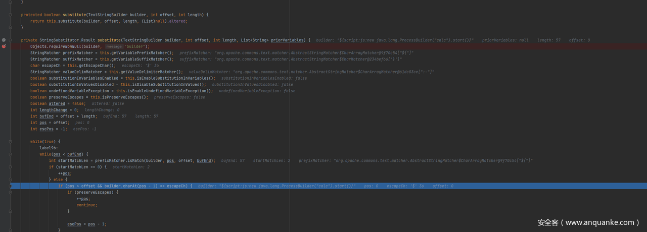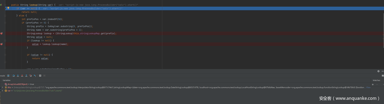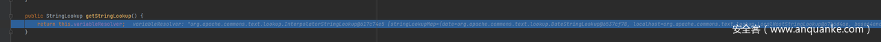 将代码定位到org.apache.commons.text.lookup.InterpolatorStringLookup#lookup
