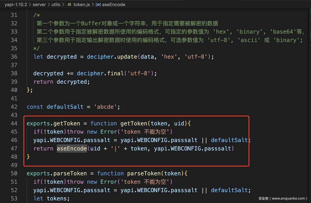 要注意的是,aseEncode()方法,data参数为 uid + ‘|’ + token ,password 为 默认salt 或用户自定义salt。默认salt为 abcde