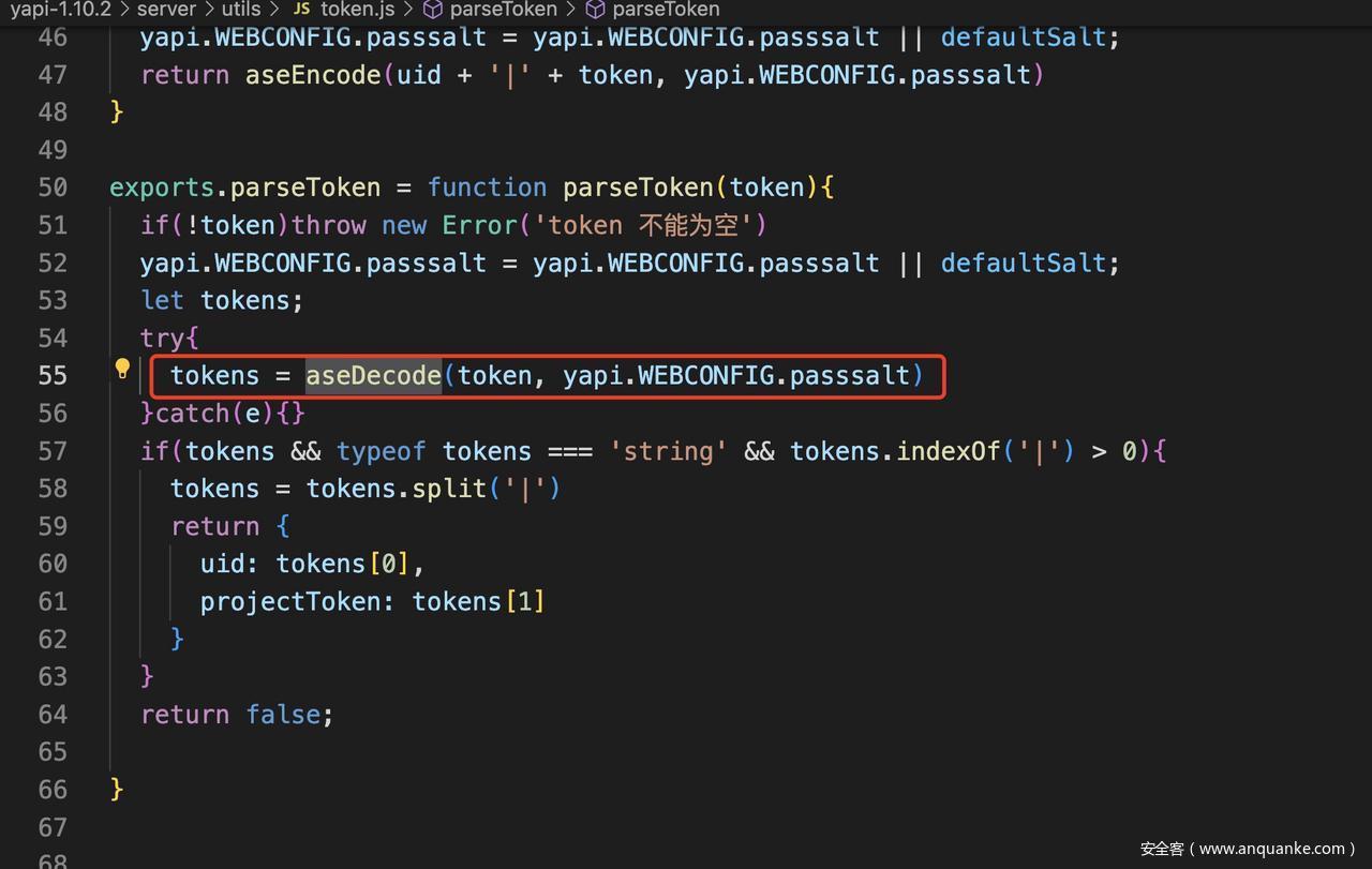 parseToken()在判断token不为空后 ,进入 aesDecode()解密token,如果解密失败,parseToken() 返回False。
