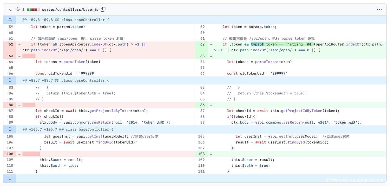 修复方式:在if 判断中增加对参数token的验证,token 必须为字符串。