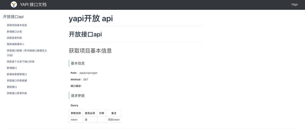 在漏洞描述部分、结合修复记录,发现注入点为 token。查看官方文档:https://hellosean1025.github.io/yapi/openapi.html ,/api/project/get 接受参数为token