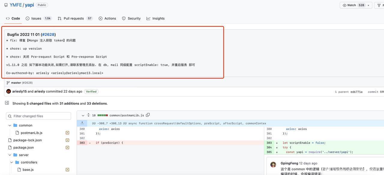 1.https://github.com/YMFE/yapi/commit/59bade3a8a43e7db077d38a4b0c7c584f30ddf8c
