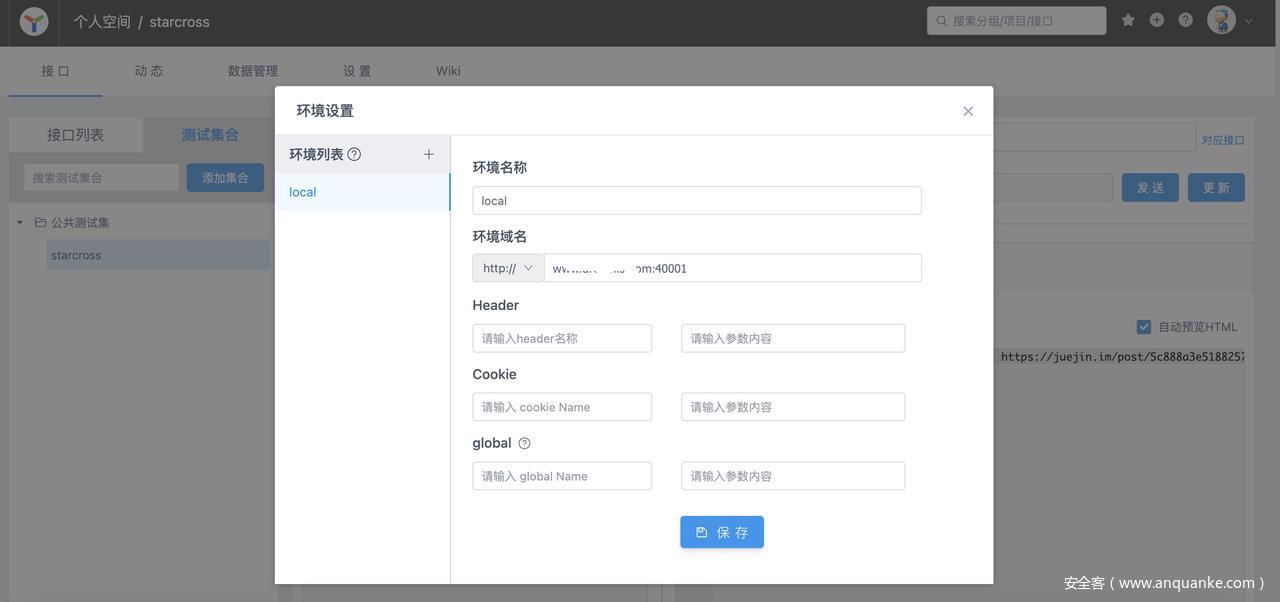 若为本地搭建,环境域名修改为:127.0.0.1:40001