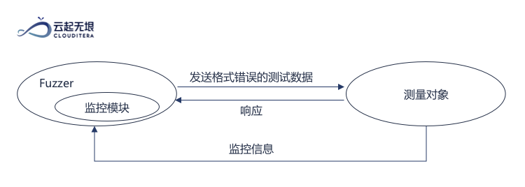 网络协议的模糊测试可能是最广泛被利用的模糊测试类别,目前存在很多不同的方法来实现对网络协议的模糊测试。网络协议的模糊测试如此之流行是因为它能够发现很多高风险漏洞。其测试对象包括邮件服务器、数据库服务器、远程访问服务、多媒体服务器和备份服务器等。网络协议的模糊测试要求构造的测试数据包能识别目标socket, 通过变异或生成的方法构造包含畸形数据的数据包,然后将这些数据包传递给待测软件, 并监视待测软件以发现漏洞。网络协议的模糊测试模型如下图所示。图中的模糊测试工具和被测对象分别是测试中的两个端点,即客户端和服务端的模式, 模糊工具充当客户端, 用来测试服务端的漏洞。模糊工具中的监控模块用来对被测对象的行为进行实时的跟踪、收集并分析,以判断在测试过程中是否发生异常。