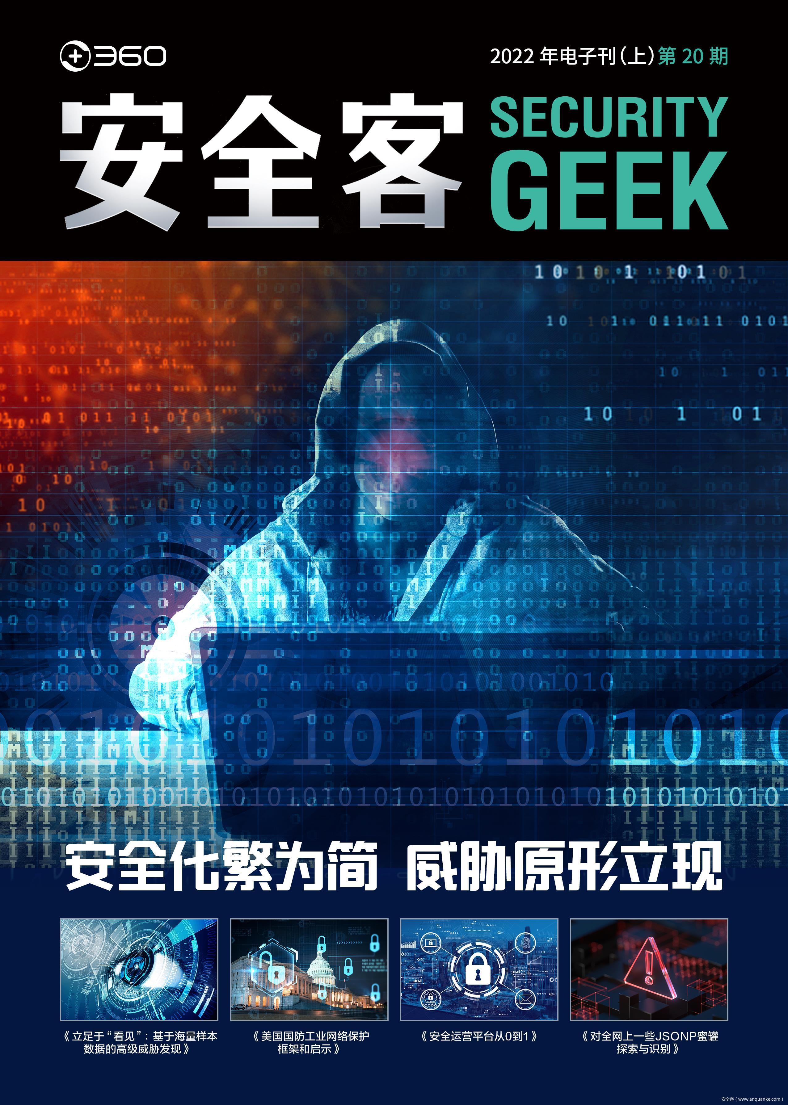 本期电子刊中,就收录了来自360混天零实验室的干货文章《立足于“看见”:基于海量样本数据的高级威胁发现》。文中从严峻的网络威胁形势、恶意行为自动化检测技术、海量样本数据运营、情报生产和高级威胁发现等4个方面,介绍了基于海量样本数据的高级威胁发现。对热衷高级威胁的你,这是绝对的干货内容。