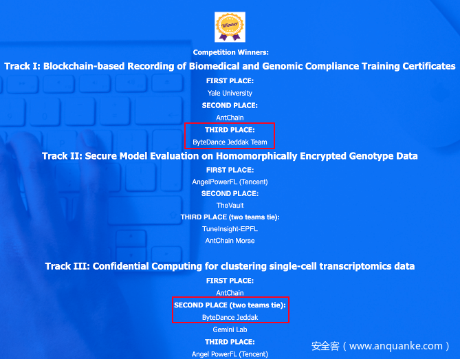 近日,第九届iDASH国际隐私计算竞赛落下帷幕,字节跳动安全研究独立组队-Jeddak Team,首次参加了可信计算和区块链两个赛道的角逐。在为期4个月的赛题准备和组委会官方评估后,Jeddak提交的可信隐私计算解决方案从众多参赛队伍中脱颖而出、入围前三。