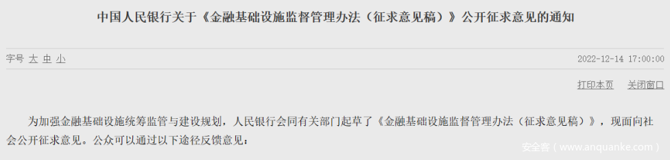 12月14日,人民银行发布《金融基础设施监督管理办法(征求意见稿)》(下称《办法》)并向社会公开征求意见。《办法》分为六章,共四十六条。