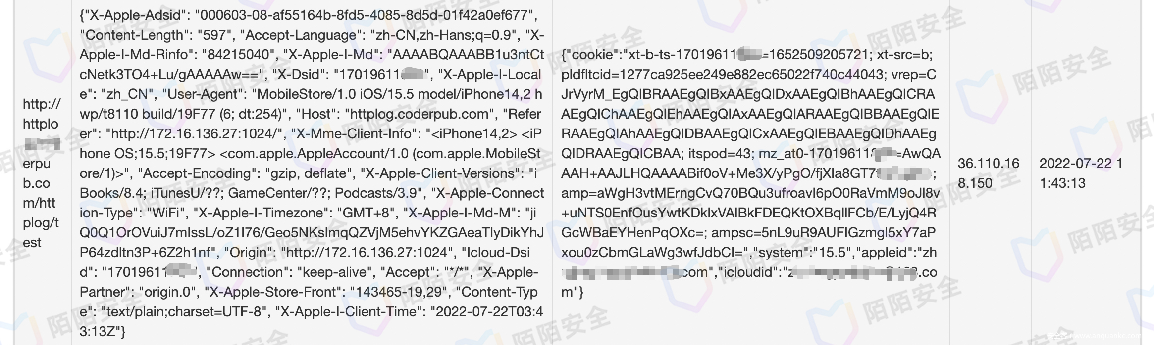 另外在这个 WebView 中向任意域名发送请求,都会带上部分 iTunes Store cookie 信息: