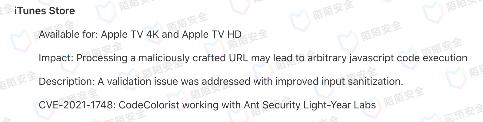 感兴趣的朋友可以直接研读 cc 师傅的文章:《CVE-2021-1748:从客户端 XSS 到弹计算器》 https://codecolor.ist/2021/08/04/mistuned-part-i/