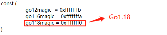对于Go语言木马样本的分析,我们认为首先需要判断其是什么版本Go编写的:通过ida进行字符串检索,运气好可以找到对应的版本字符串。如果没有相关字符串,就只能通过Pclntab结构来进行判断和符号还原。Pclntab结构的Majic字段如果是0xFFFFFFF0,则可判断是Go1.18及之后的版本。下图是Go源代码中对Majic的定义: