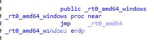 脱壳得到Beacon载荷的本体后,将其拖入ida,我们会发现样本入口点和之前其他Go样本有所不同。Windows平台下常规编译的Go程序,入口点是_rt0_amd64_windows。是单独一条jmp指令。如下图: