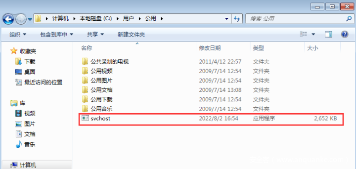 之后,木马将在C:\Users\Public目录下释放名为svchost.exe木马并启动执行。