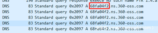 受害主机发起DNS请求,比如域名为68fa04f2.ns.360-oss.com。DNS服务器收到此请求首先尝试找到域扩展名“.com”,然后找到“ns.360-oss.com”,但是在其数据库中找不到“68fa04f2.ns.360-oss.com”。然后它将请求转发到ns.360-oss.com(这是黑客搭建的DNS服务器),并询问它是否知道这样的名称,作为回应ns.360-oss.com预计将返回相应的IP;然而,黑客则会在返回数据配置各种C&C指令。