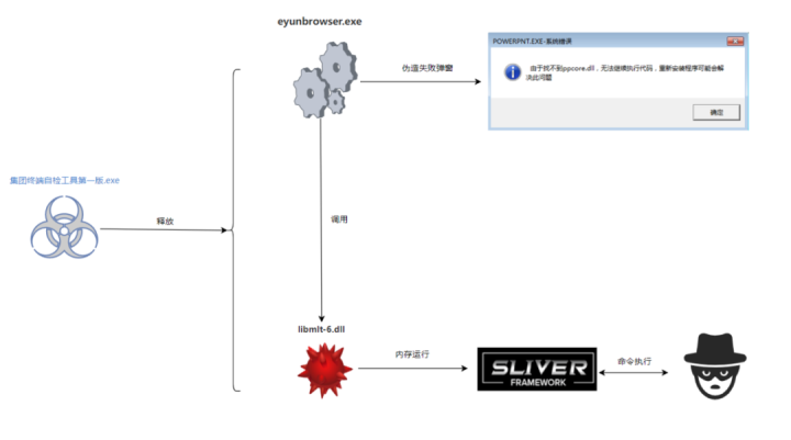 相关样本攻击流程如下图所示,主要使用白加黑技术。
