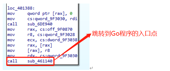 以上图为例,函数sub_401190是以Call为结尾。下图中call sub_461140才是木马真实的入口点。