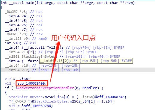 将main函数正确识别后,可在此找到用户代码的入口点。用户代码的入口点在如图所示的地方。