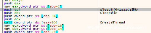 随后样本会对Sleep线程进行等待。等待的时间是180201毫秒。两个时间会相差3000毫秒。