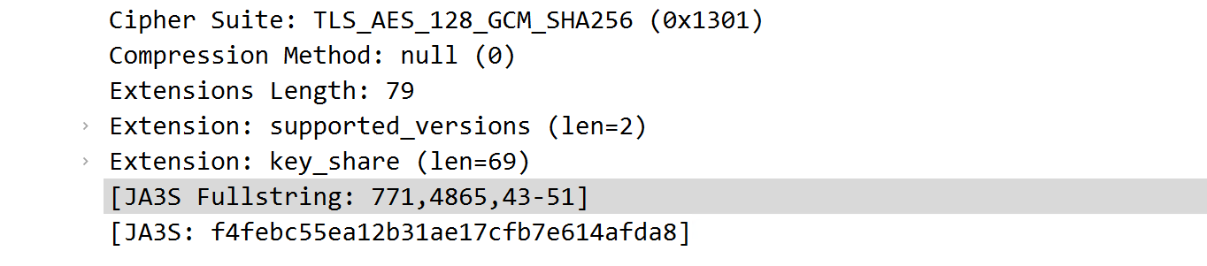 JA3 工具用于为与服务器的客户端信标连接生成签名。另一方面,JA3S 能够生成服务器指纹。两者的结合可以产生最准确的结果。JA3S 可以捕获完整的加密通信并结合 JA3 的发现来生成签名。更详细的信息可以直接查看官方github仓库:https://github.com/salesforce/ja3。