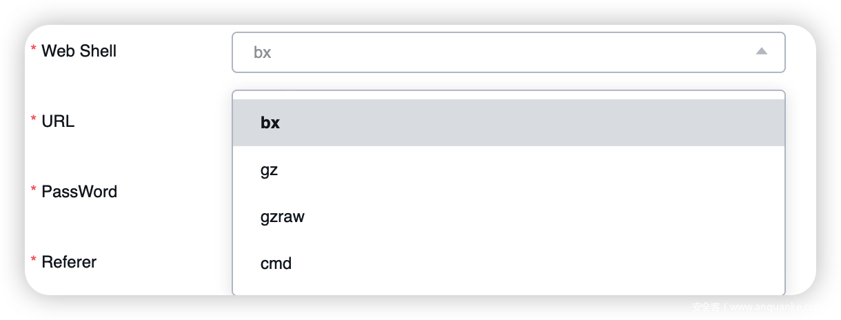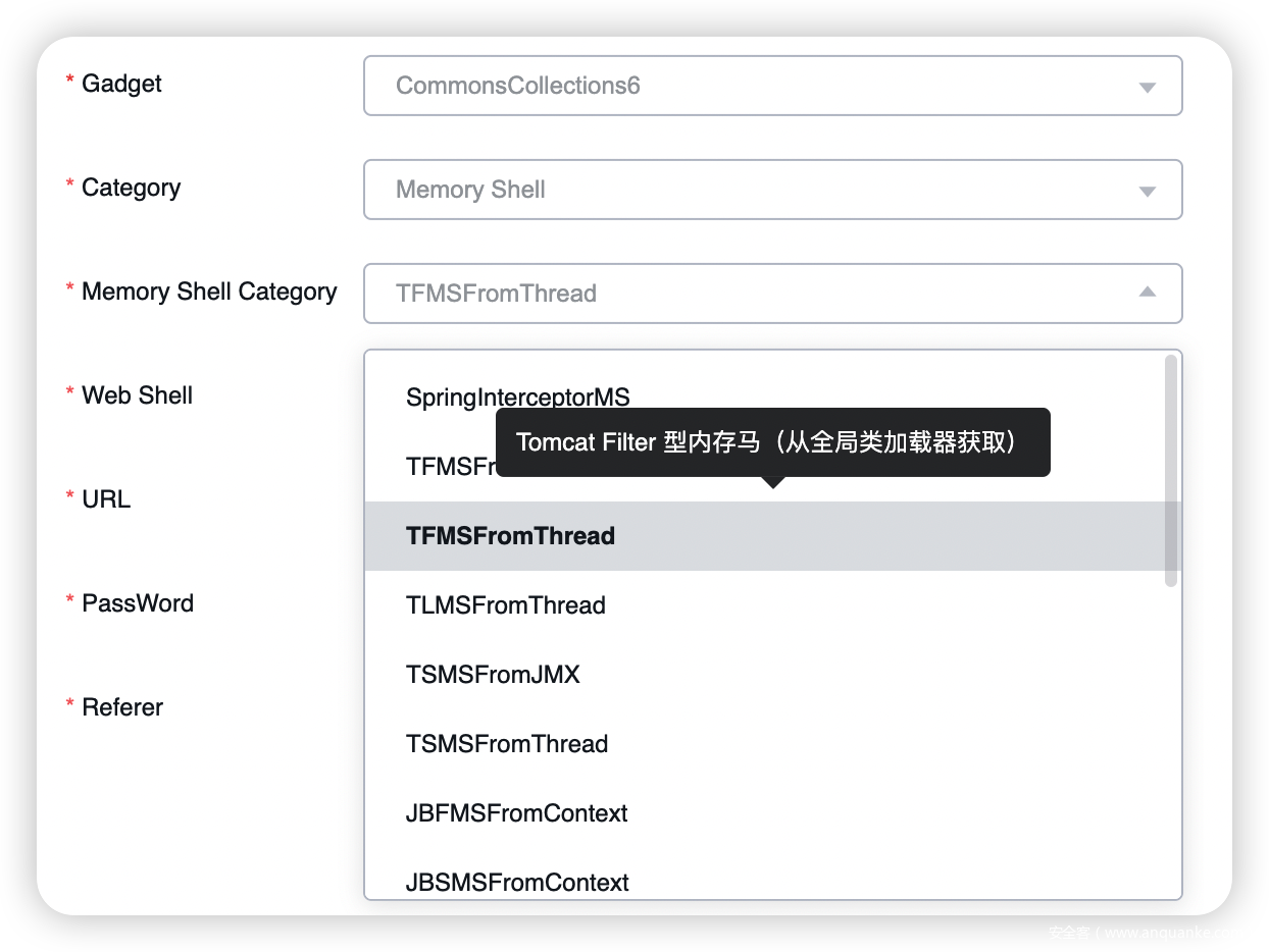选定了内存马类型后,可以为内存马设置地址、密码及用来校验的 Referer。