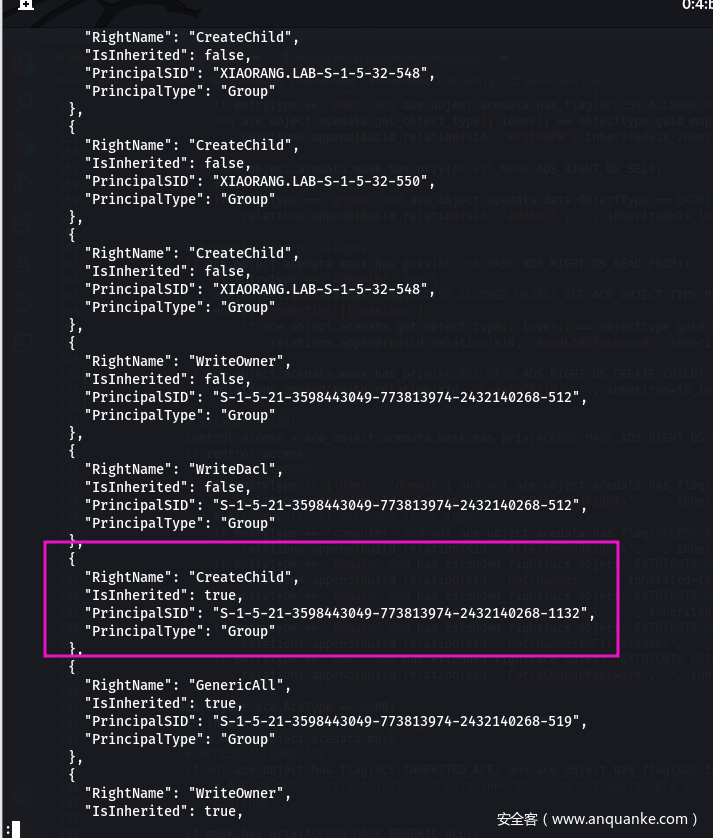 AdFind.exe -b "CN=Computers,DC=xiaorang,DC=lab" nTSecurityDescriptor -sddl+++