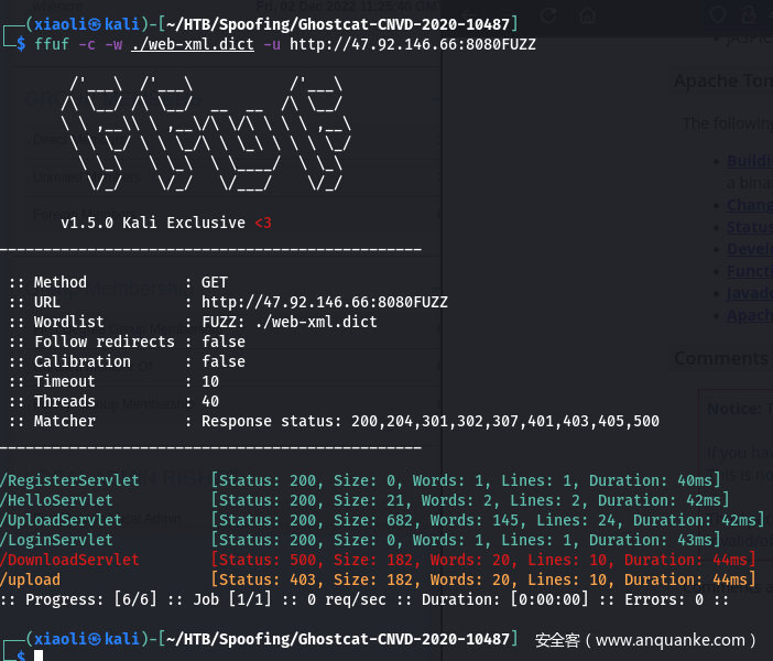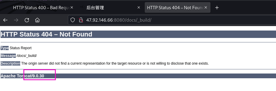 Focus on port 8009 (ajp) ,意味着是tomcat (对应了靶场的tomcat tag) - 目录扫描,404页面显示为tomcat 9.0.30