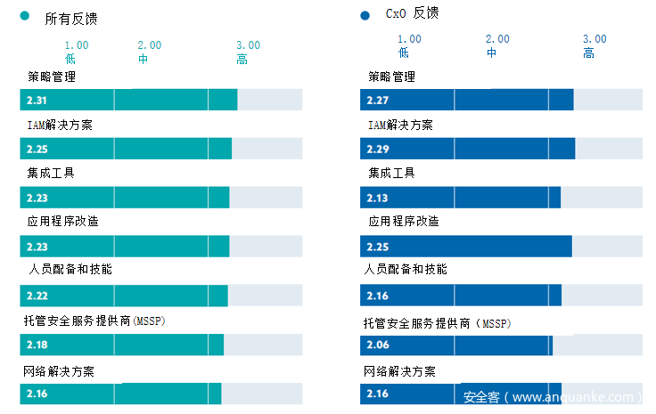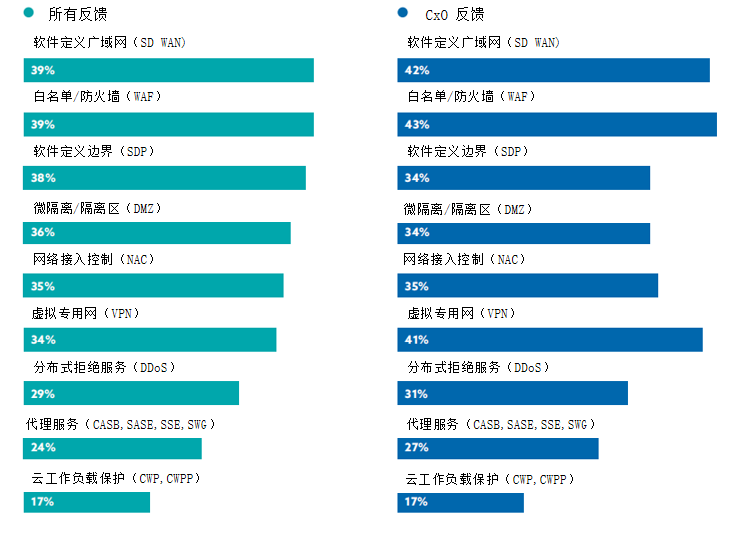 纵使大部分组织均增加了在零信任方面的投资,但在解决方案的选择上却无法把握住重点。各种零信任方案中囊括了网络管理和访问控制的多种技术,受访组织对不同技术方案的投资相当分散,这显示了不同组织对零信任战略有着不同的认知、理解和需求。这预示着在未来一段时间内,市场上对于零信任方案的设计和描述仍难以形成一致。