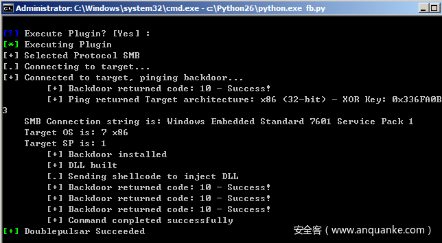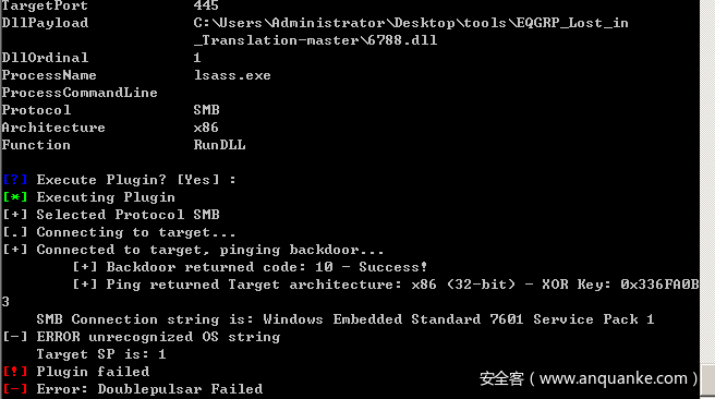 最后我们把生成的exe拖到工具目录下,重新执行DoublePulsar,完美解决