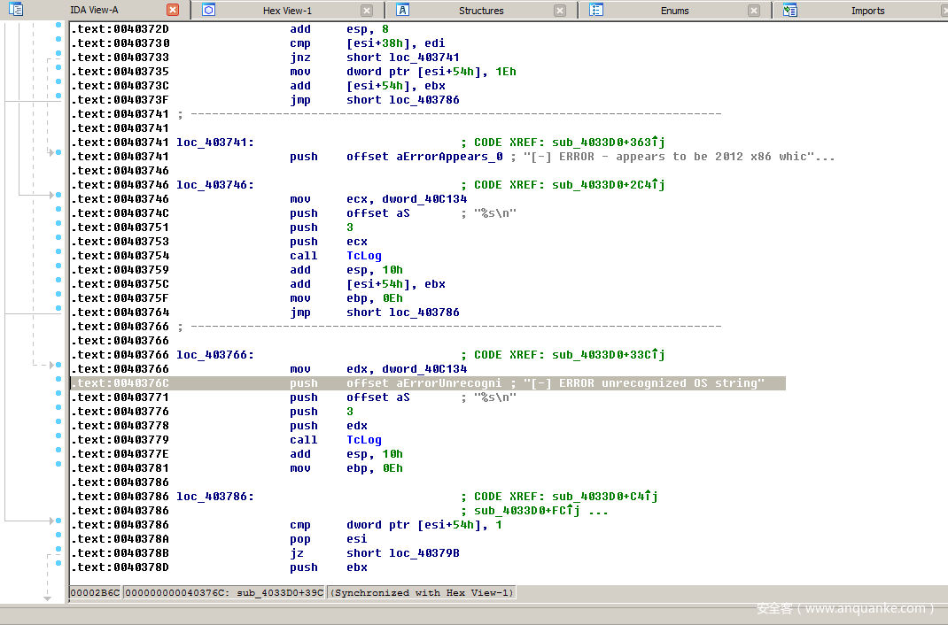 拖进来后界面如上,然后敲一下空格键,找到原作者说的0x0040376C位置