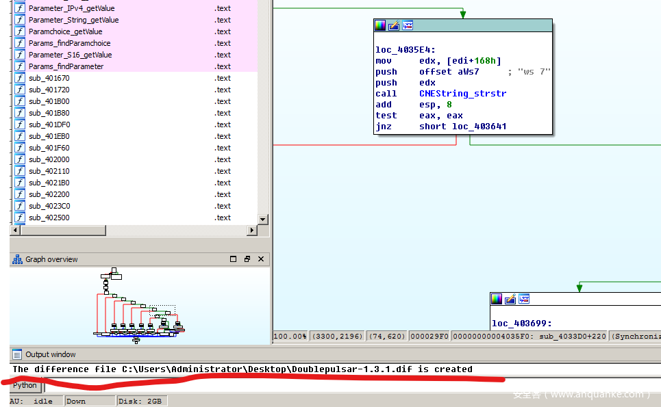 把DoublePulsar拖入ida,位置在:工具目录\windows\payloads\Doublepulsar-1.3.1.exe,最好先做个备份以免修改出bug还原不了