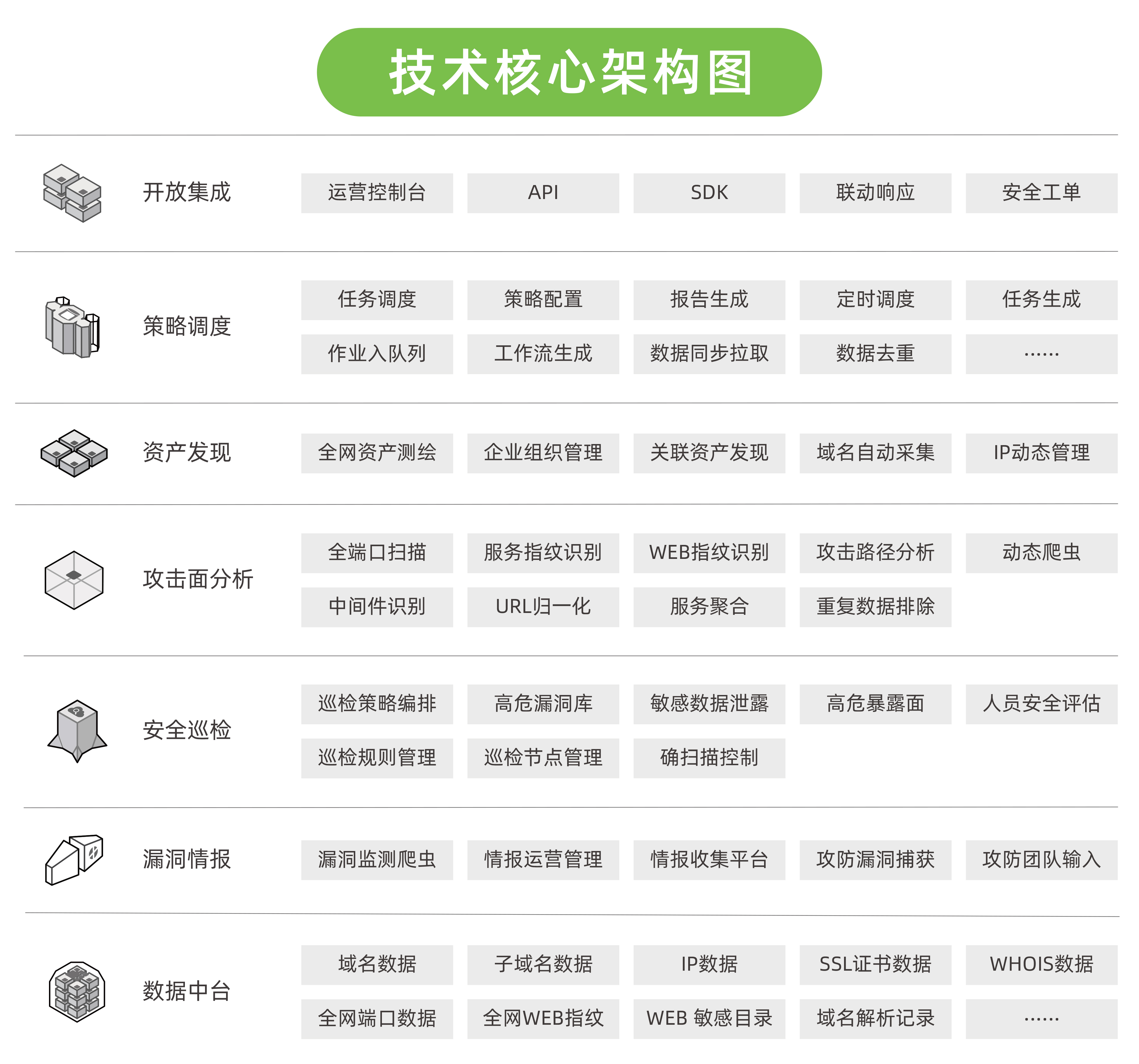 【持续扫描、发现和列举面向互联网的资产的工具或能力,建立所发现资产的独特指纹,并识别已知和未知资产的风险。】