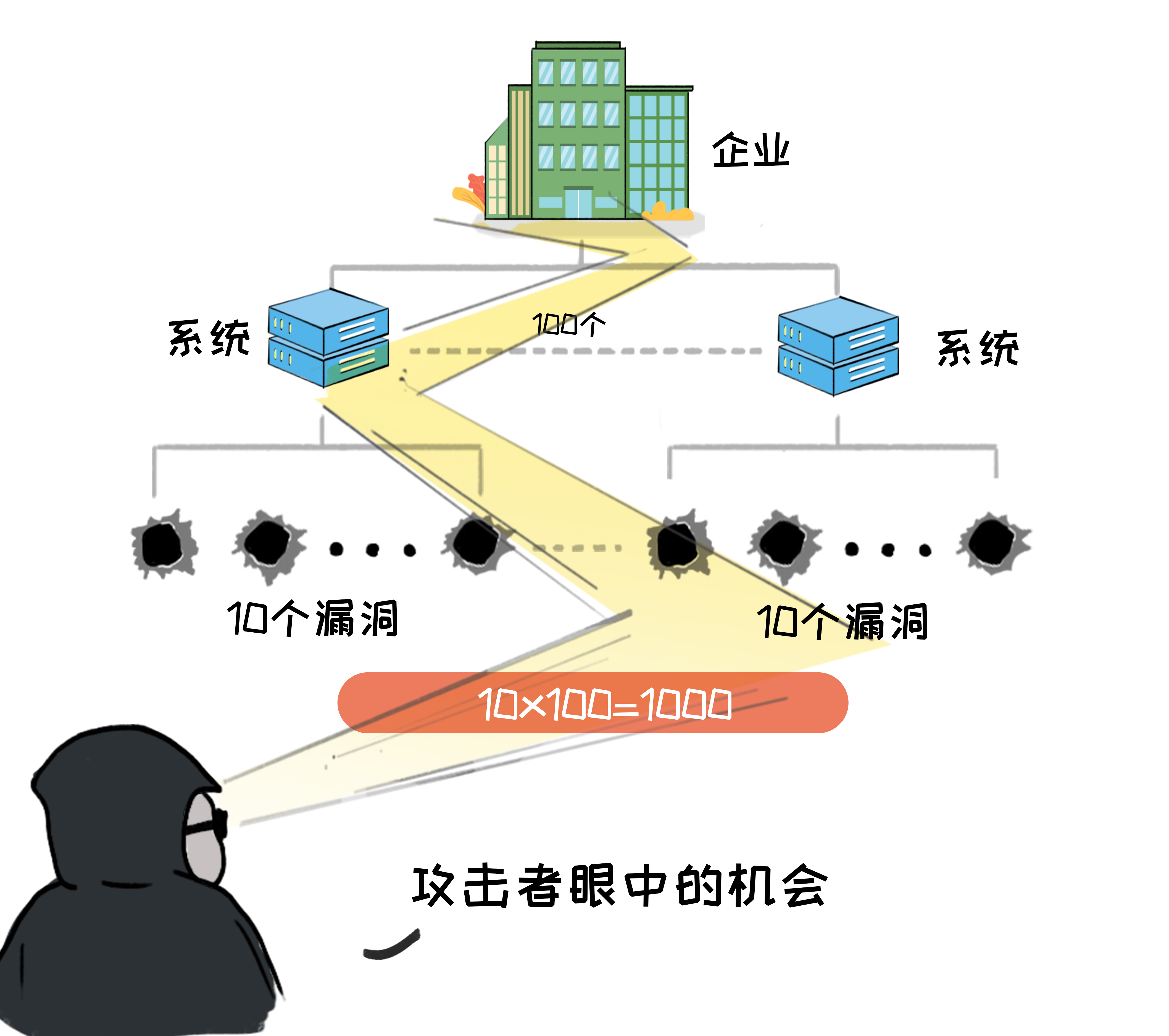 那么就有10 * 100 个潜在的攻击路径被攻击者击穿