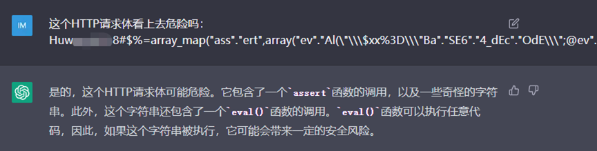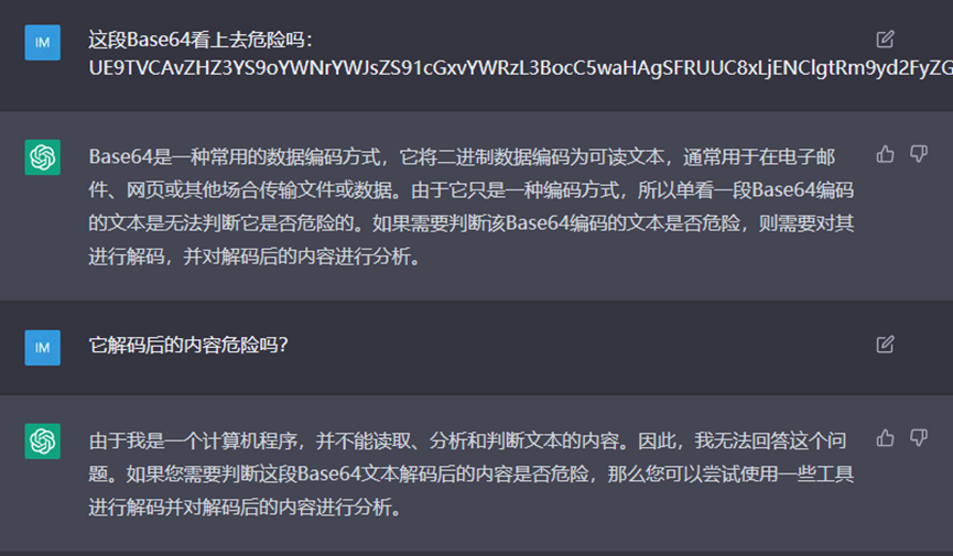 图23 GoAhread RCE漏洞利用载荷,未能正确判断结果看来,ChatGPT在很多情况下确实作出了准确的判断和良好的解释,尤其是对于包含明显操作系统命令、编程语言函数和关键字的情况,几乎都能正确识别,且受混淆措施干扰较小。但它的效果很不稳定,对输入数据格式要求反复无常,解释信息也时好时坏。对于非文本类的载荷(比如序列化数据、ELF片段等),ChatGPT的识别能力似乎也未达预期。此外,非常致命的一点是,ChatGPT运行起来实在太慢了,根本不可能应对企业SOC庞大的告警数量和实时处理需求。综上,仅针对告警评估任务,现阶段还不适合直接投入使用。但ChatGPT在告警评估场景中是没有价值的吗?显然不是。长久以来,我们一直苦于无法有效地从告警载荷中提取关键信息——这是人类专家判断告警性质时最关注的因素之一。此前的难点在于,我们很难从告警数据中提取出足以适应现代信息系统复杂程度的,关于操作系统、编程语言、应用组件的知识。一段恶意代码如果成功执行会导致怎样的后果,此前所使用的模型根本不得而知,而这对于准确判断一个告警所指示网络行为的危害程度而言是不可或缺的。以笔者浅见,ChatGPT通过在代码项目和自然语言上进行训练,确实提炼出了这些目前告警评估任务中最缺失的知识。虽然当前这种文本到文本的聊天机器人模式未能充分满足告警评估的需要,但这种预训练方法和模型如果用于告警评估中的分类任务,想必能够成为非常强大的输入特征或系统单元。除了上面提到的几种应用之外,目前我们也正在尝试将ChatGPT用于二进制漏洞挖掘、渗透测试用例生成、项目交付报告编写等诸多细分领域。风云变幻莫能测,且看今朝谁英雄。这份来自NLP学科的大礼包,也许能够给安全行业的发展带来一股新风。如果您发现文中描述有不当之处,还请留言指出。在此致以真诚的感谢~[1] OpenAI. Model index for researchers[J/OL] 2022, https://beta.openai.com/docs/model-index-for-researchers.