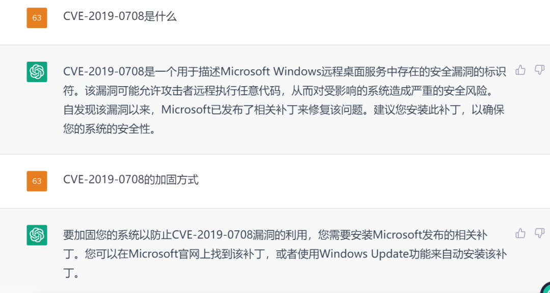 图15 ChatGPT具备2019年某CVE的相关知识