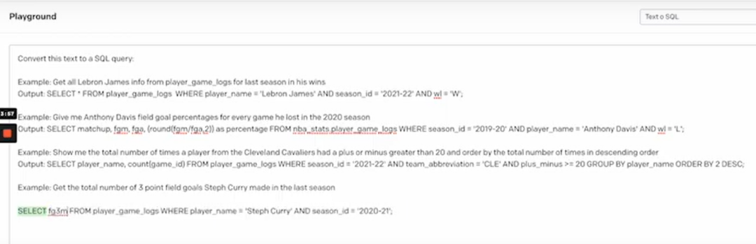 图1 通过GPT-3将自然语言转化为SQL语句