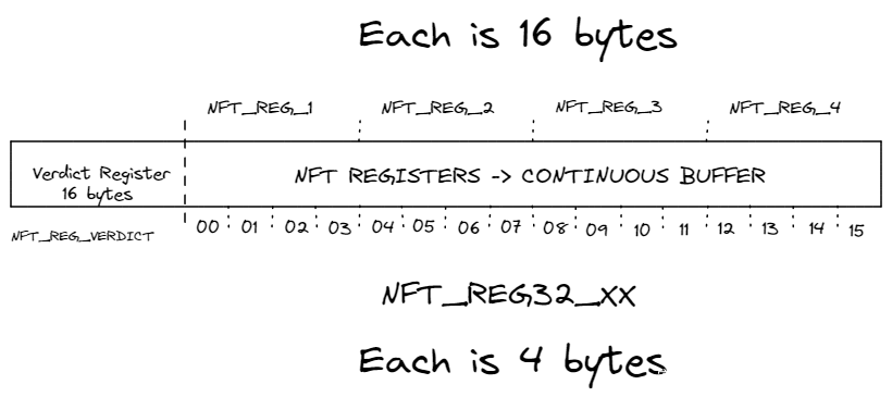 register 有两种索引方式。NFT_REG_1 到 NFT_REG_4 是一种,共 4 个 register,每个 16 字节;NFT_REG32_00 到 NFT_REG32_15 是另一种,共 16 个 reigster,每个 4 字节。在两种索引方式中,NFT_REG_VERDICT 都指向 verdict register,大小为 16 字节。两种索引方式针对的都是同一片内存,因此内存总数都是 16 + 4 16 = 16 + 16 4 = 80 字节。