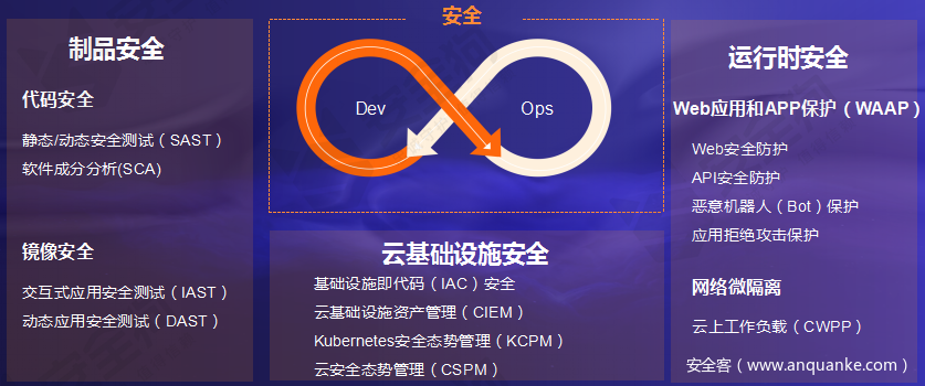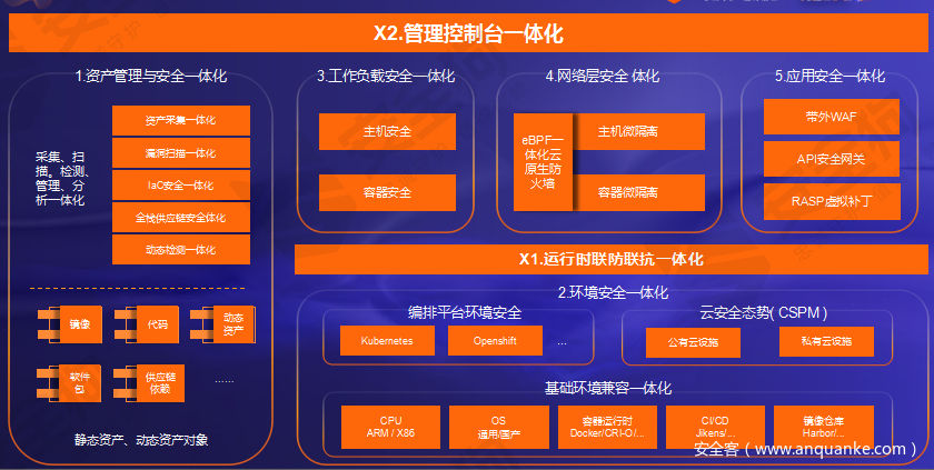 由于应用程序安全性和基础设施安全性已经成为一体,云原生安全方案的实施应该识别和减轻整个堆栈风险的保护措施,云原生安全架构需要“一体化”,覆盖全栈安全需求的体系化思路重构。也就是将安全功能整合到一个单一、无缝的解决方案中,以保护整个云原生应用程序生命周期。这些集成功能使DevOps、云基础设施和安全团队能够在复杂多变的云环境中有效且高效地实现成功的云原生安全。