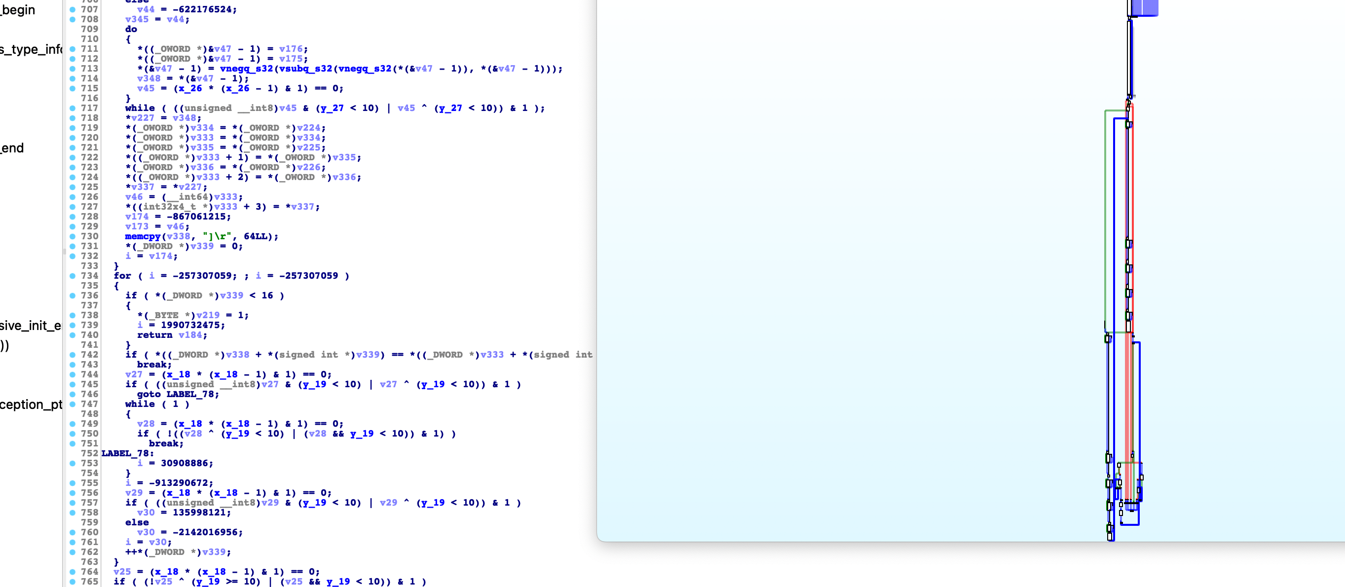 发现是静态注册的,直接能在导出函数里找到,处理伪码后如下,直接是ollvm当时就放弃了: