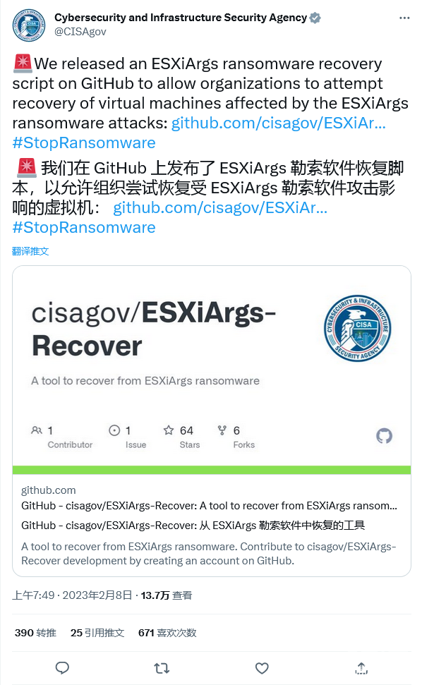 ESXiArgs-Recover 工具用于帮助组织恢复受 ESXiArgs 勒索软件攻击影响的虚拟机。