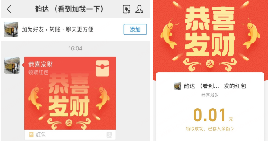 第二,添加后,好戏就上演了。直接给你发红包,当然金额是“多一分都没有”